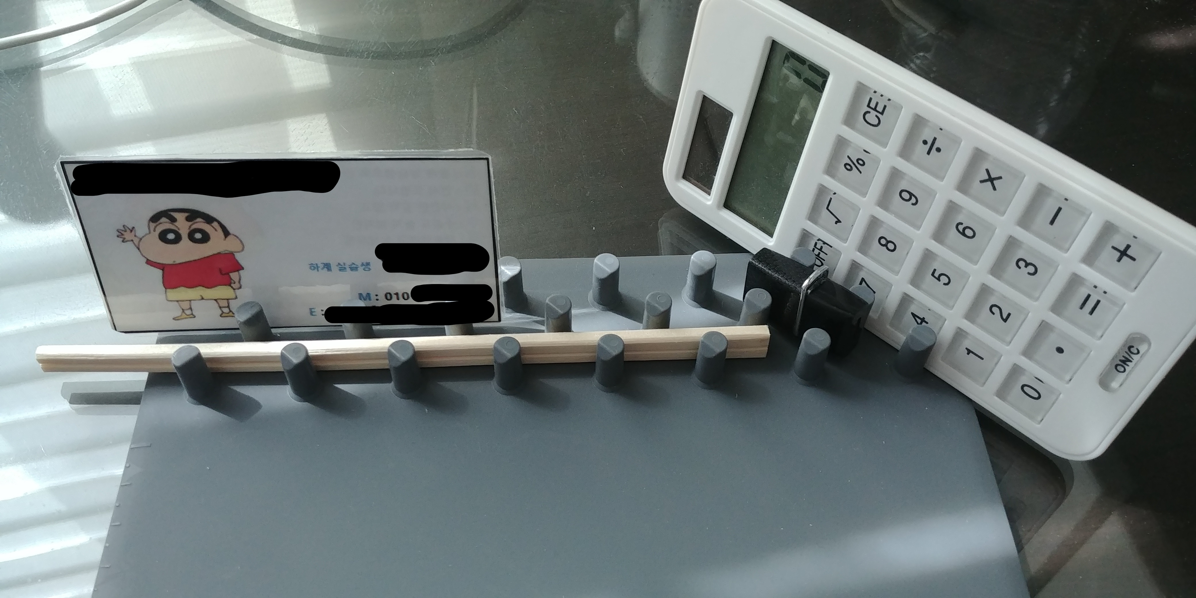 보시다시피, 나무젓가락은 얇아서 오히려 공간이 남습니다. 그리고 계산기도 잘 들어가는데, 스마트폰도 저렇게 수납하면 좋을 것 같습니다.