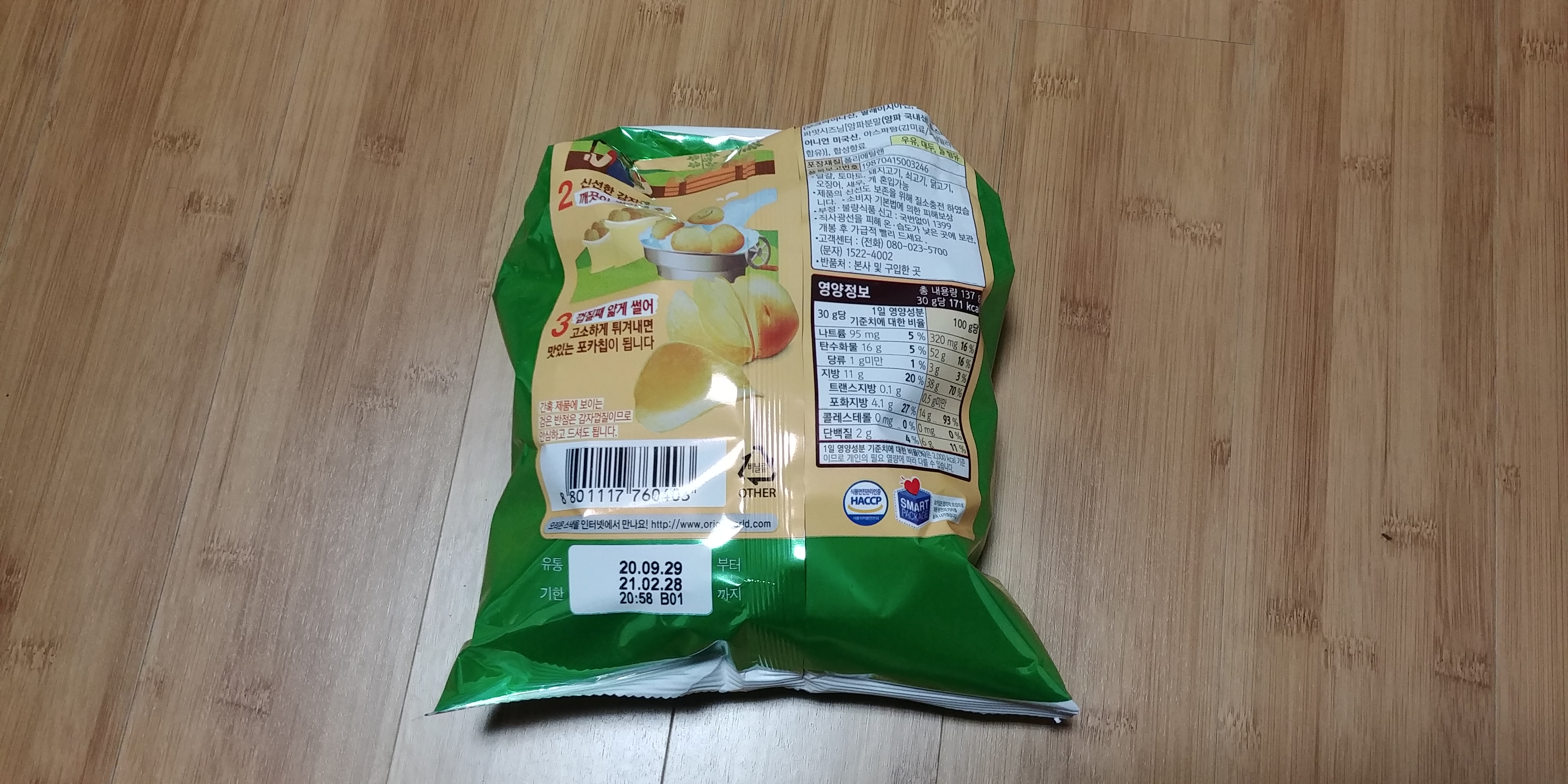 최종 결과물은 위의 사진과 같습니다. 과연 저렇게 접었다고 해서 과자가 눅눅해지지 않고 오랫동안 바삭할 수 있겠느냐고 생각하실 수 있지만, 생각보다 상당히 오래갑니다. (제 경험상 여름철에도 일주일은 거뜬했습니다.)