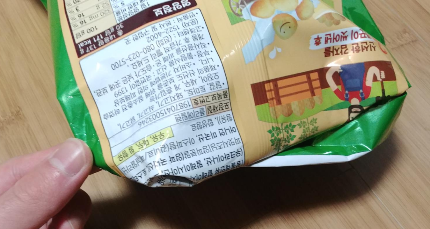 어떤 과자는 위의 사진과 같이 과자봉지 윗부분을 양 옆으로 뜯는 게 잘 되지만, 어떤 과자는 잘 안되기 때문에 주의하셔야 합니다.