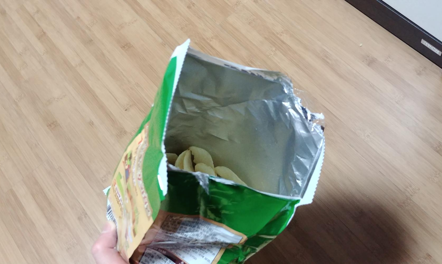 이 보관법의 유일한 단점이 있다면, 바로 과자 봉지를 위의 사진처럼 뜯어야 한다는 것입니다.