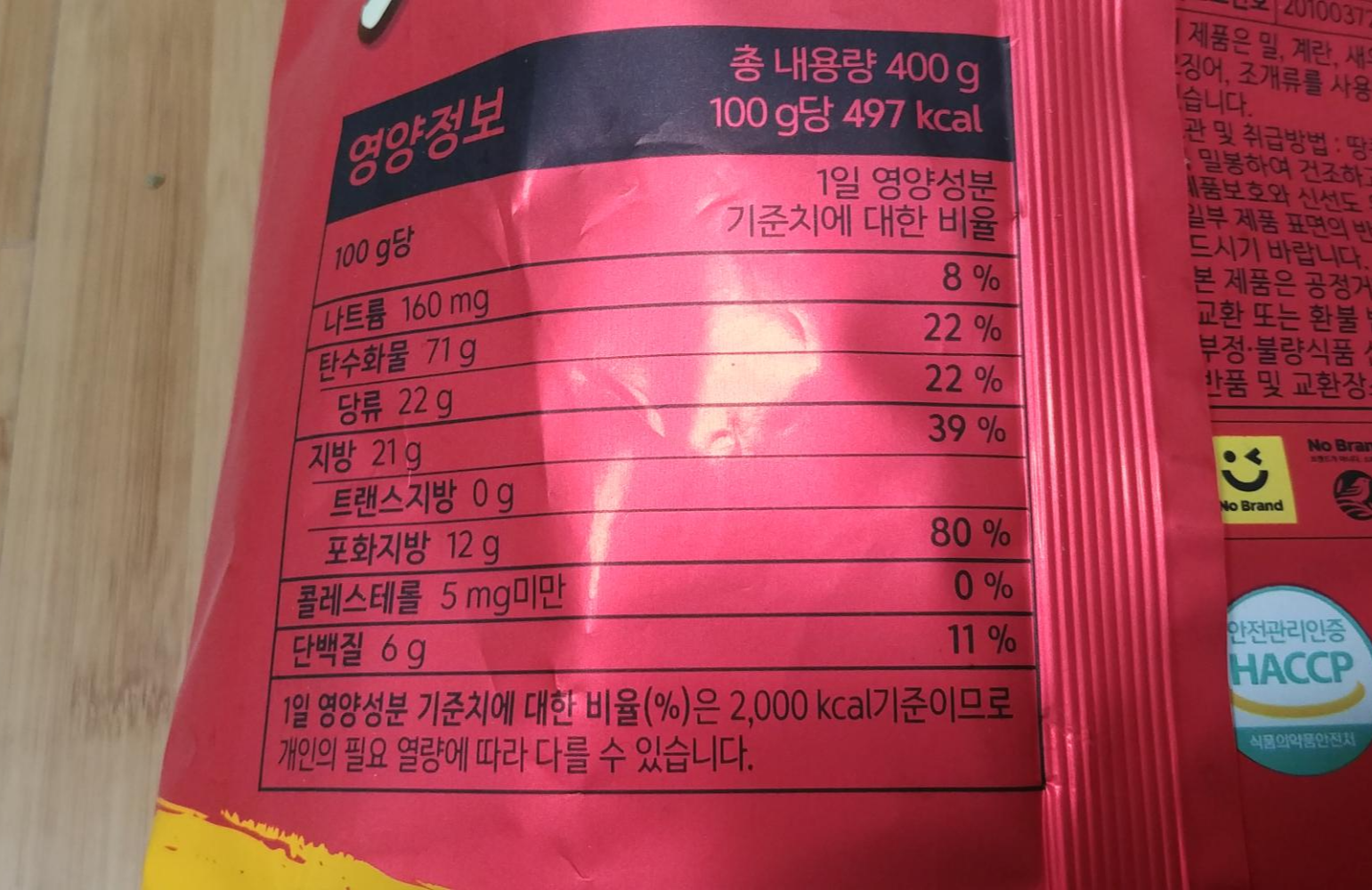 하지만 확실히 용량이 많고 가격이 저렴하다 보니 저렴한 맛이 납니다. 크라운에서 나온 땅콩 카라멜은 깊은 달콤한 맛이 나는데 노브랜드 땅콩 카라멜은 가볍고 저렴하게 달콤한 맛이 납니다.