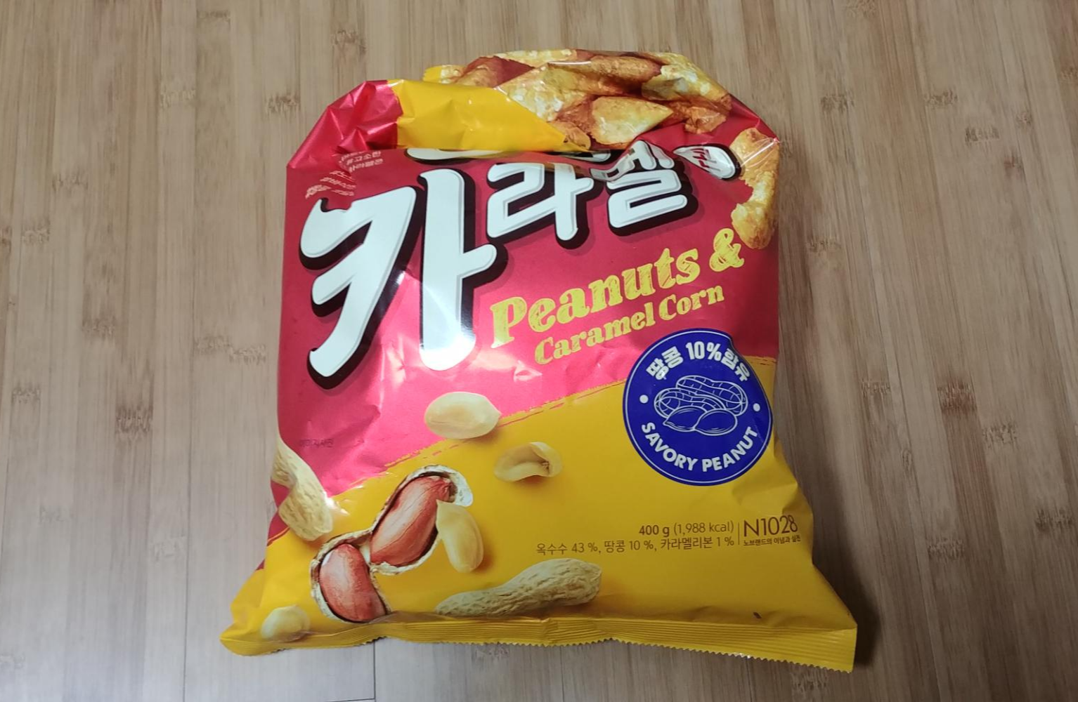 일단 가격은 너무 혜자스럽습니다. 무려 400g에 1,980원(1g당 5원)입니다. 무슨 근거로 이게 싸다고 하는지 땅콩 카라멜 과자의 근본인 '크라운 카라멜콘 땅콩'의 가격과 비교해보도록 하겠습니다.
