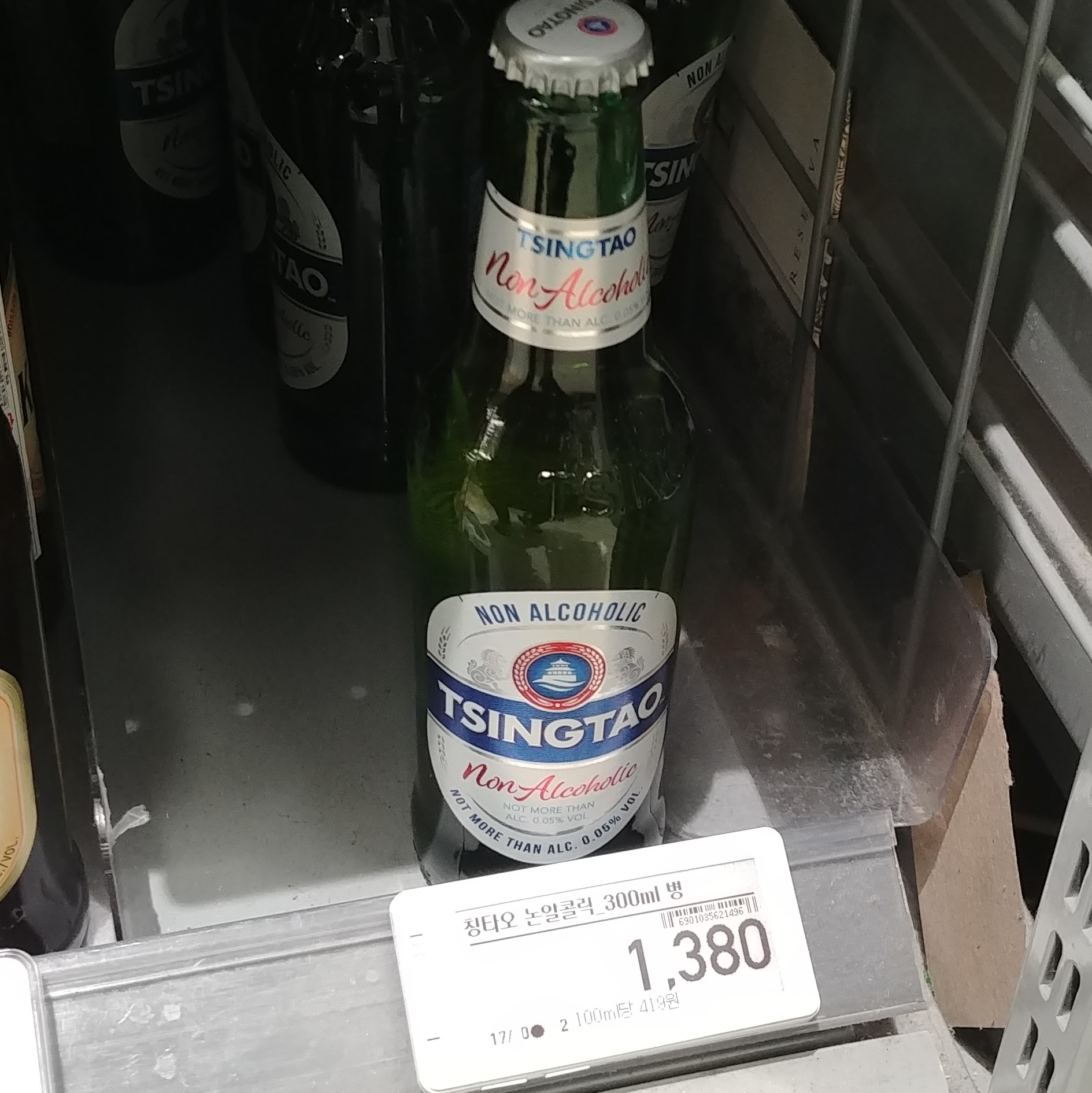 칭따오 무알콜 병맥주는 330ml에 1,380원입니다.