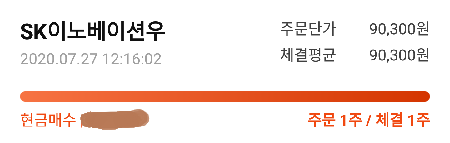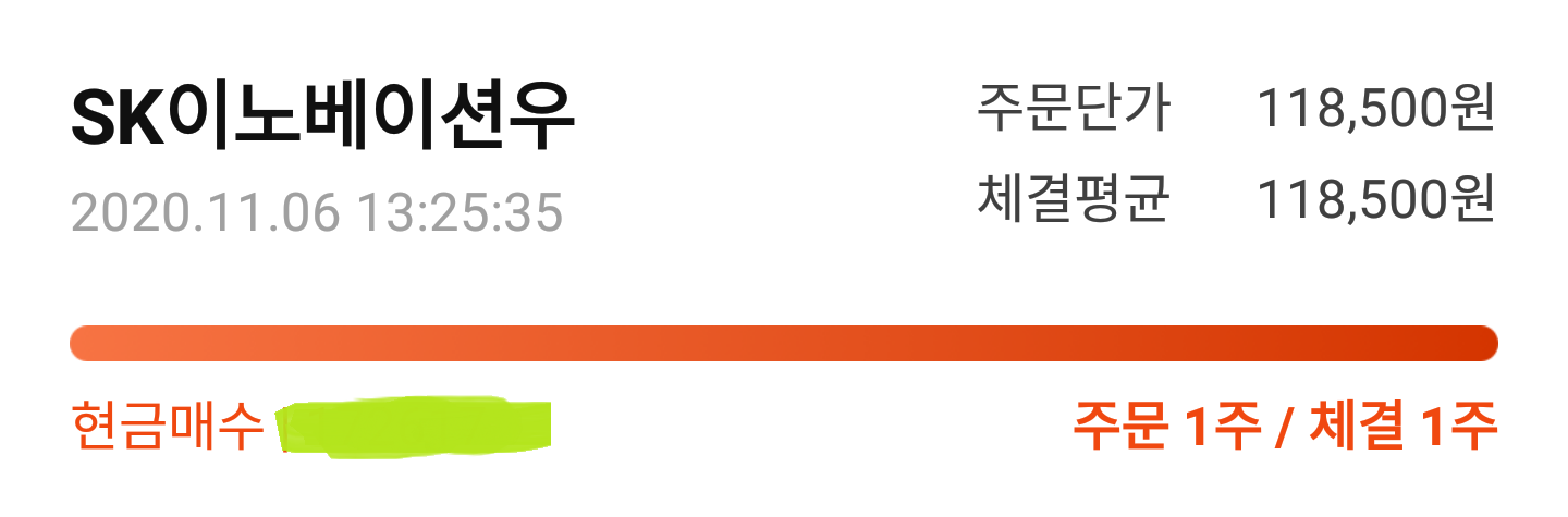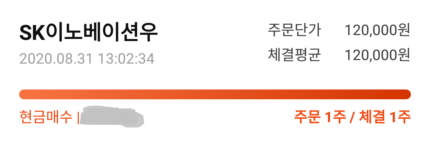 먼저 저는 SK이노베이션을 총 6주 매수했고, 총 체결비용은 817,800원이며 평균 단가는 136,300원입니다.