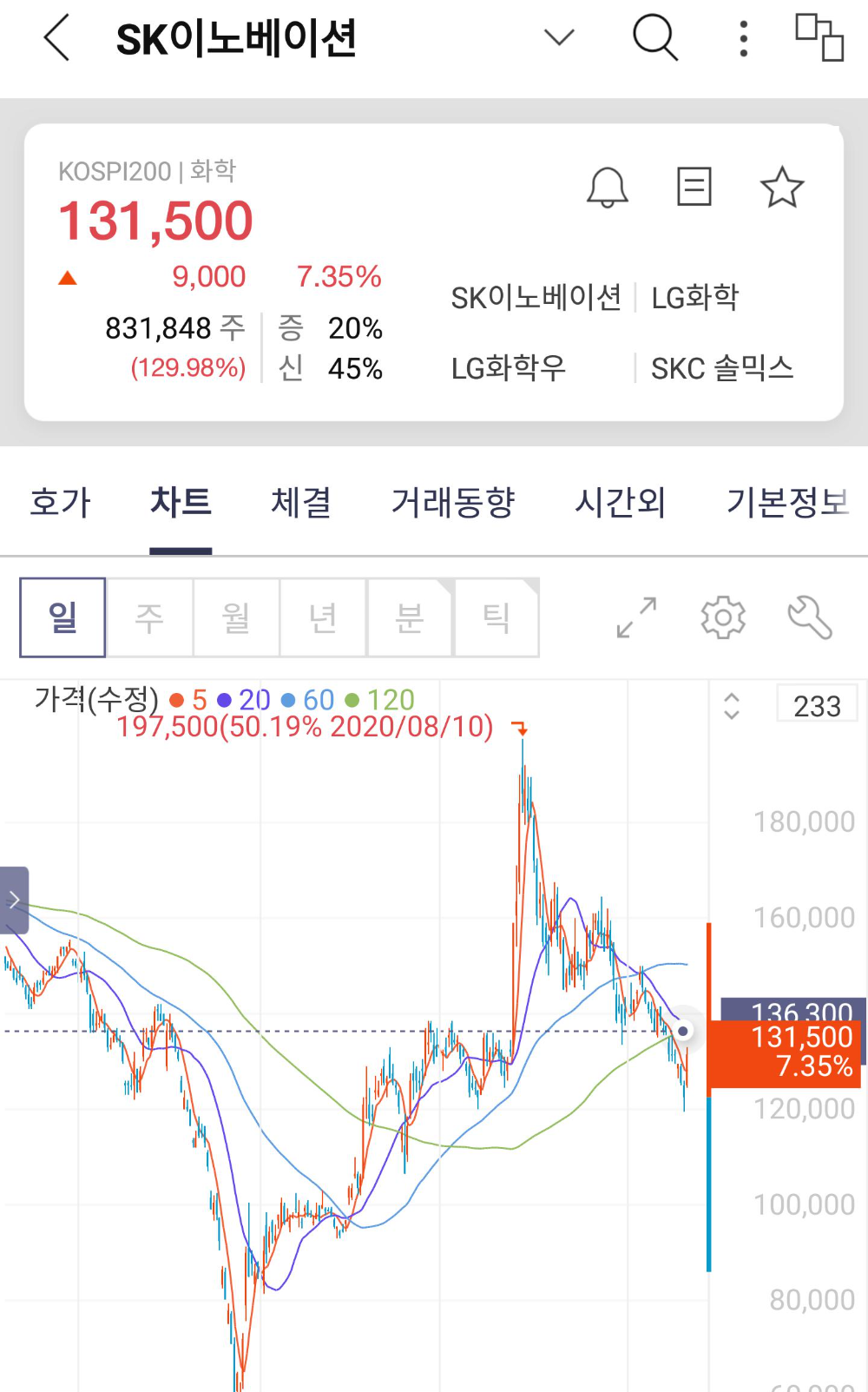 별로 떨어지지도 않았으면서 왜 그러냐고 하실 수 있겠지만, 갑자기 오늘 SK이노베이션과 SK이노베이션우의 주가가 10%가량 올라서 그렇습니다.