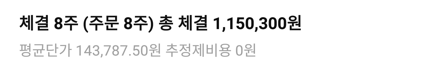 총 8주를 매수하여 총 체결액은 1,150,300원이고 평균 단가는 143,787원이라는 것을 알 수 있습니다.
