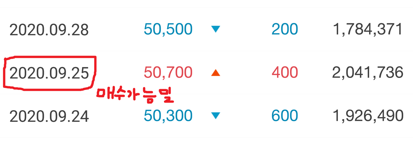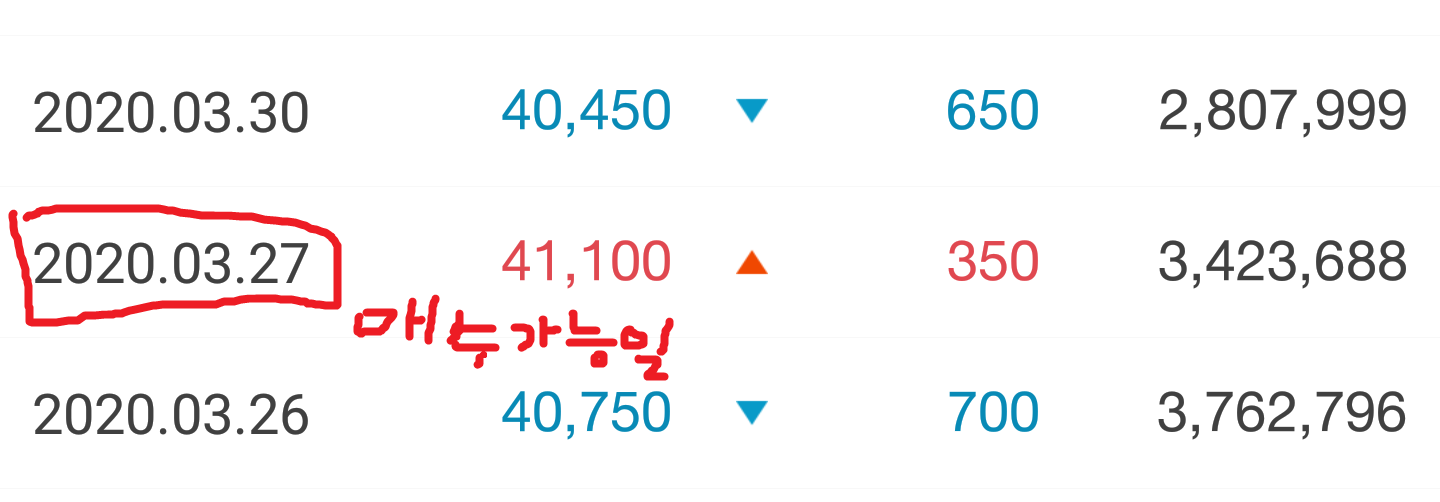 매수 가능일 다음날부터는 매수했던 삼성전자우 주식을 팔아도 배당금을 받을 수 있으니 매도가 많아져서 주가가 떨어졌다고 볼 수도 있는 것입니다.