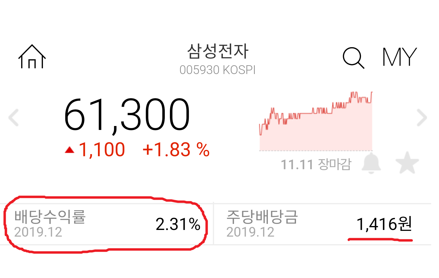 받을 수 있는 배당금은 삼성전자나 삼성전자우나 똑같지만, 삼성전자우의 주가가 더 저렴합니다.
