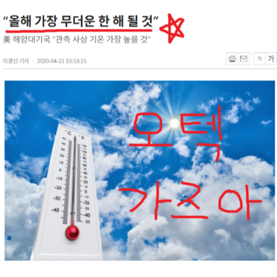 이러한 상황에서 '기상 관측이 처음 시작된 1880년 이후로 가장 더운 여름이 될 것'이라는 제목을 한 뉴스 기사를 보는 순간, 제 머리가 반짝였습니다.