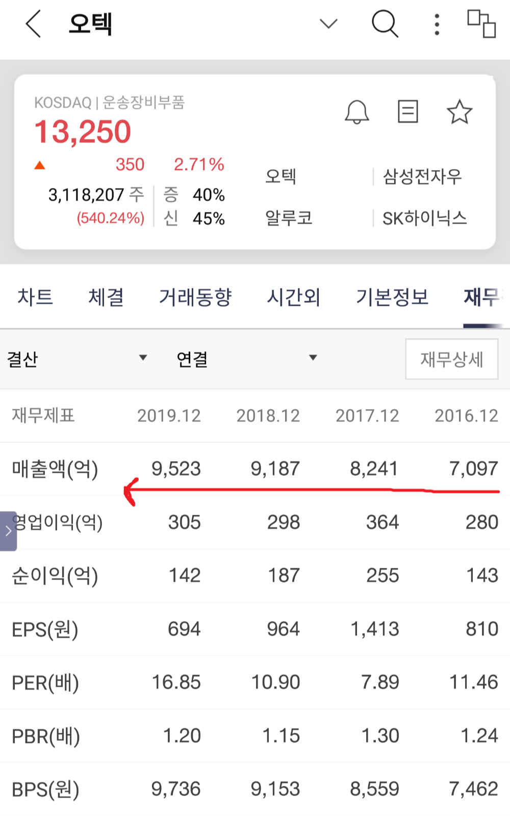 위의 오텍 재무제표를 보시면 아시겠지만, 오텍의 영업이익은 꾸준히 증가하고 있다는 것을 알 수 있습니다.