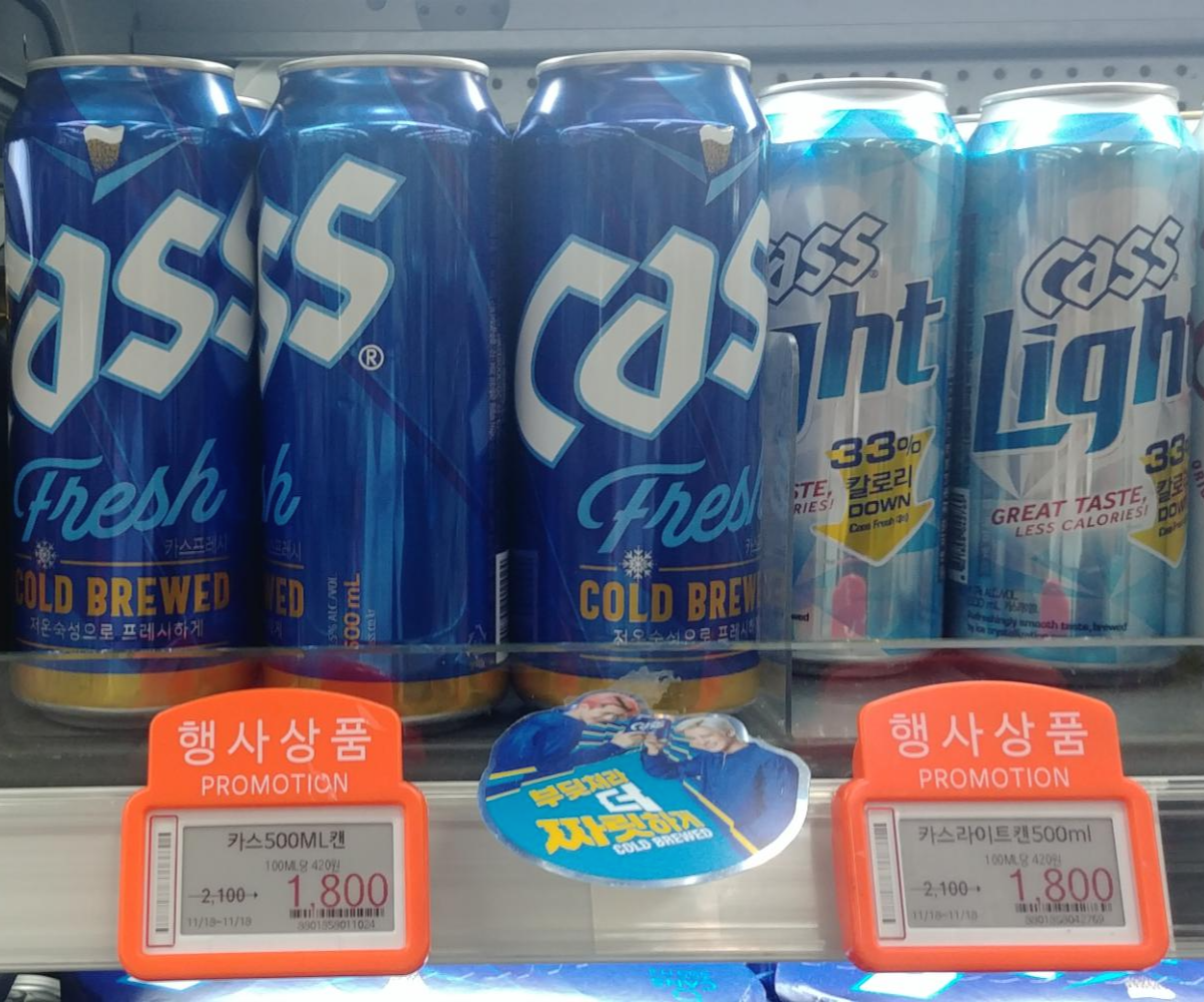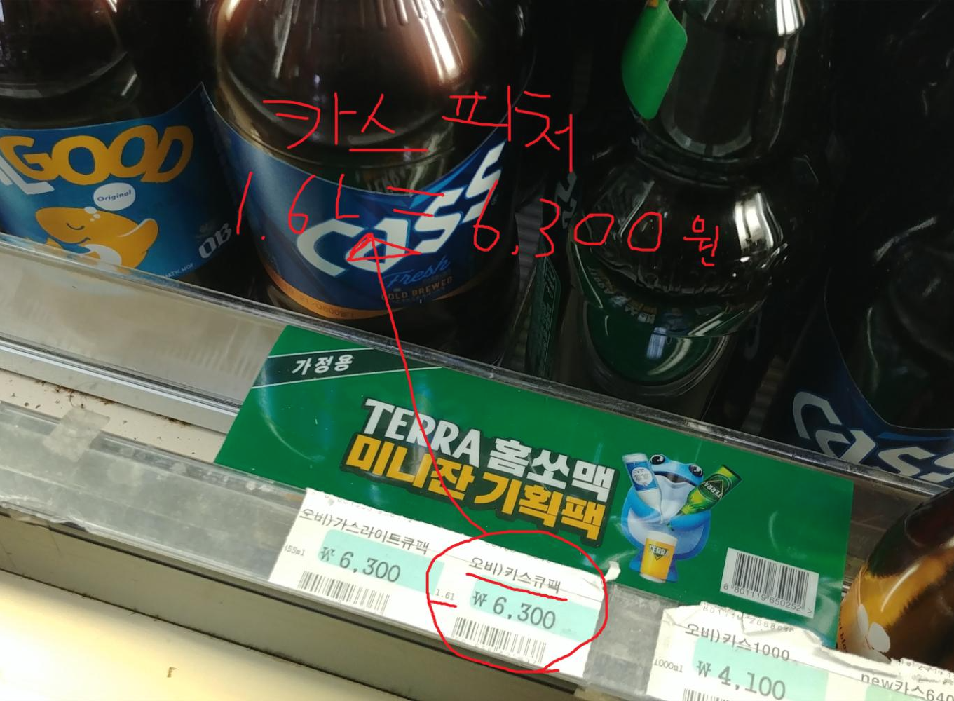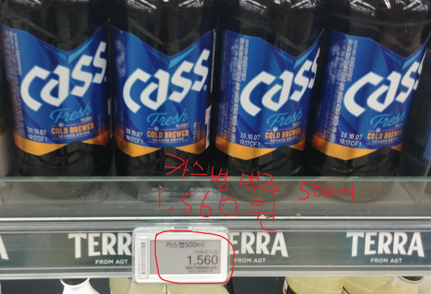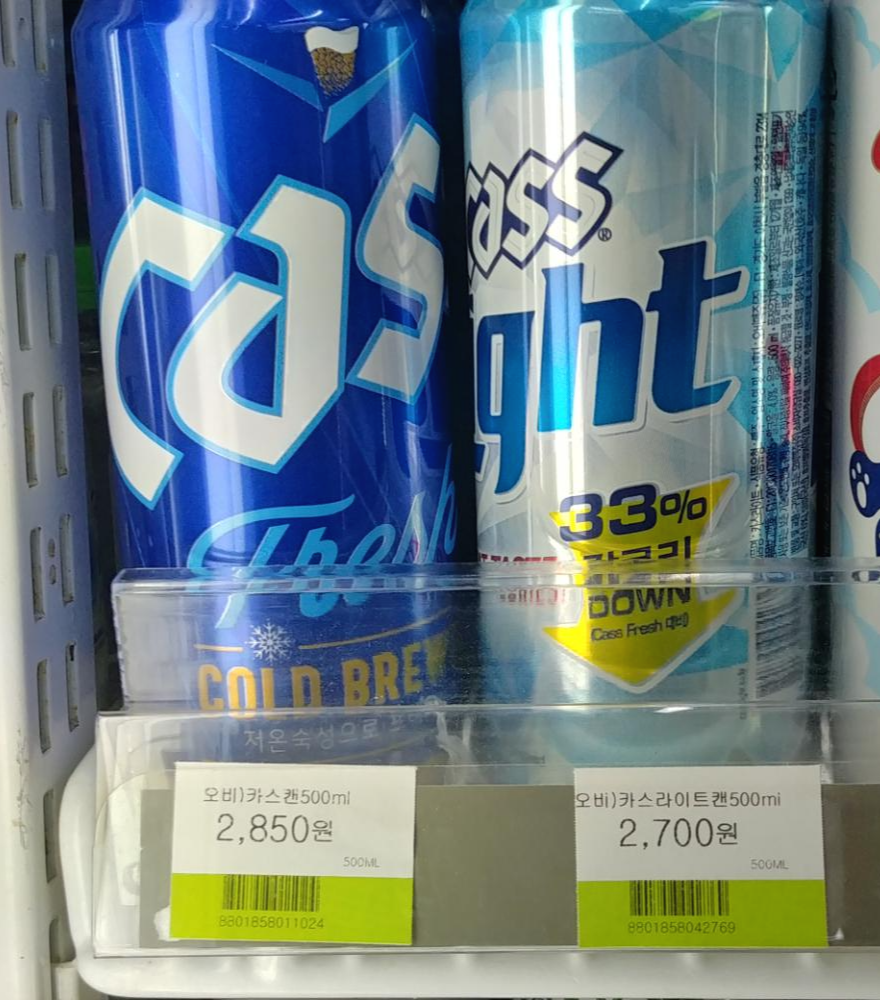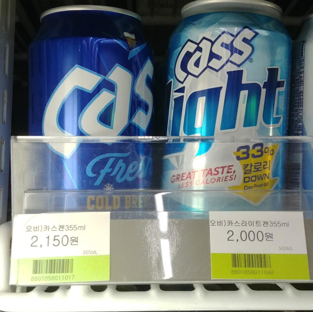 아쉽게도 카스 병맥주 500ml는 없었기 때문에 촬영하지 못했습니다.