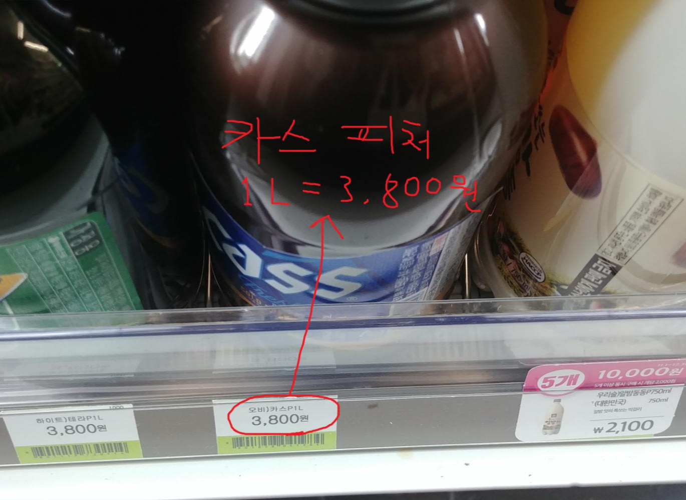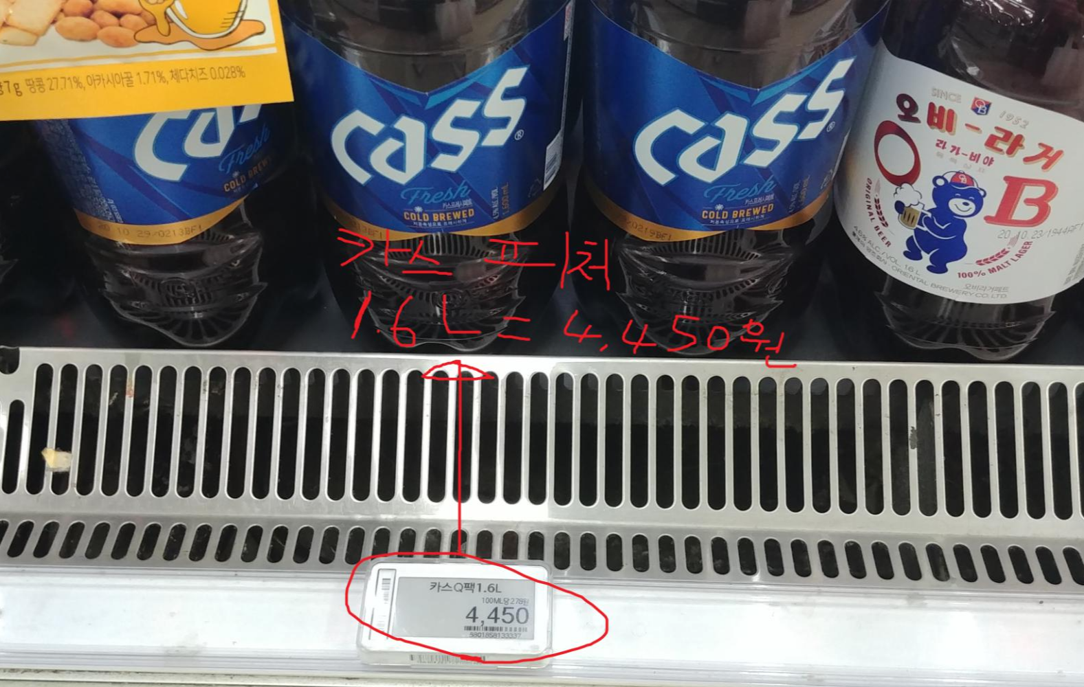 최근 급격한 물가상승으로 인해 카스 편의점 피처 가격이 다소 상승하였습니다.
