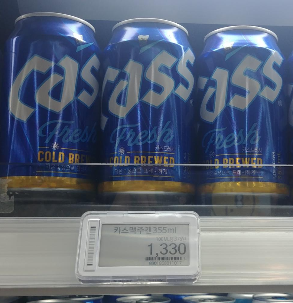 카스 캔맥주 355ml 가격은 1,330원이라는 것을 알 수 있습니다.