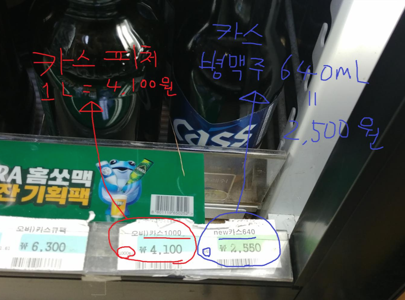 그동안 맥주 리뷰를 하면서 정확히 알지 못했던 부분인데, 오늘 이 포스팅을 하면서 카스 병맥주, 피처 가격을 정확히 알게 됐습니다.