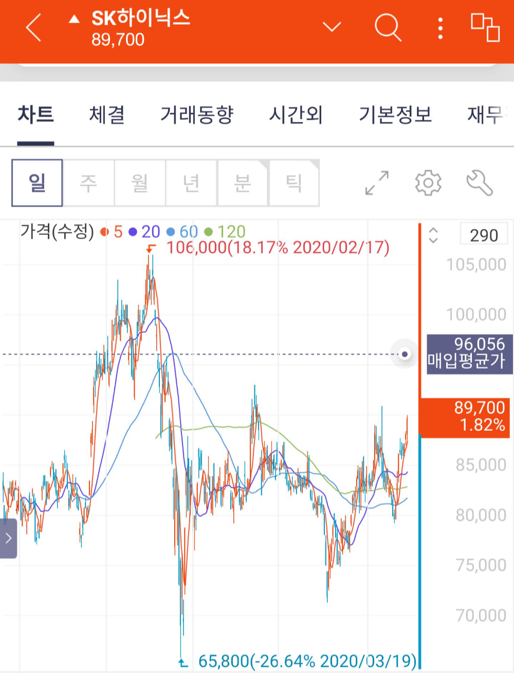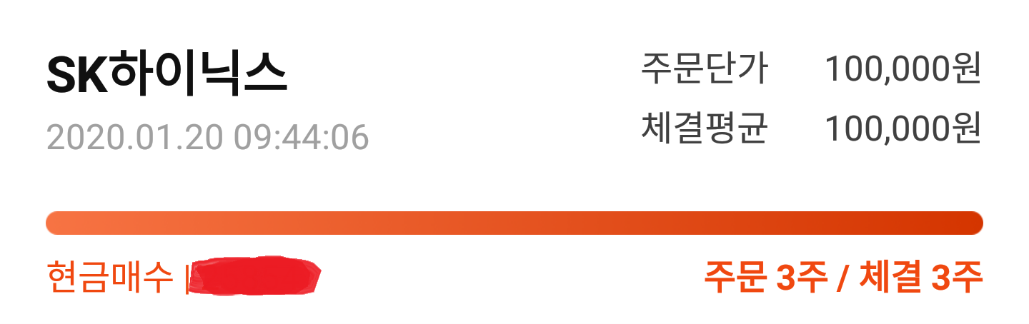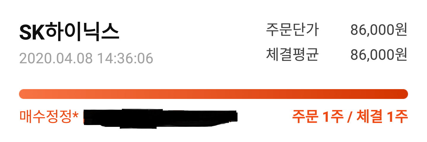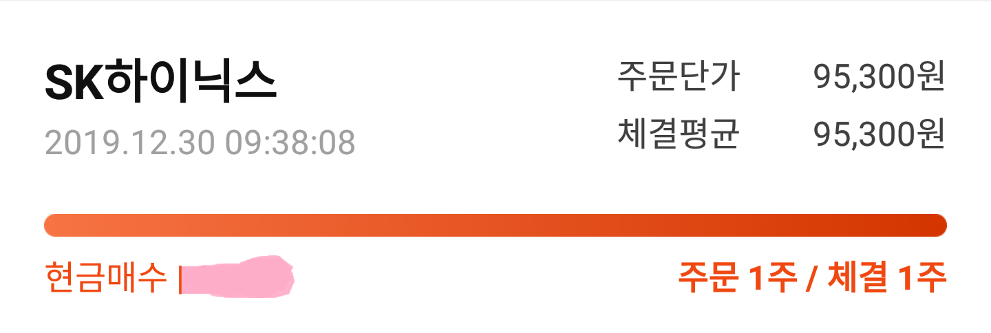 저는 SK하이닉스를 총 9주 매수했으며, 평균 매수 체결 단가는 96,000원 정도 됩니다.