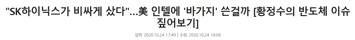 다음 변수는 SK하이닉스의 인텔 낸드 사업 인수입니다.