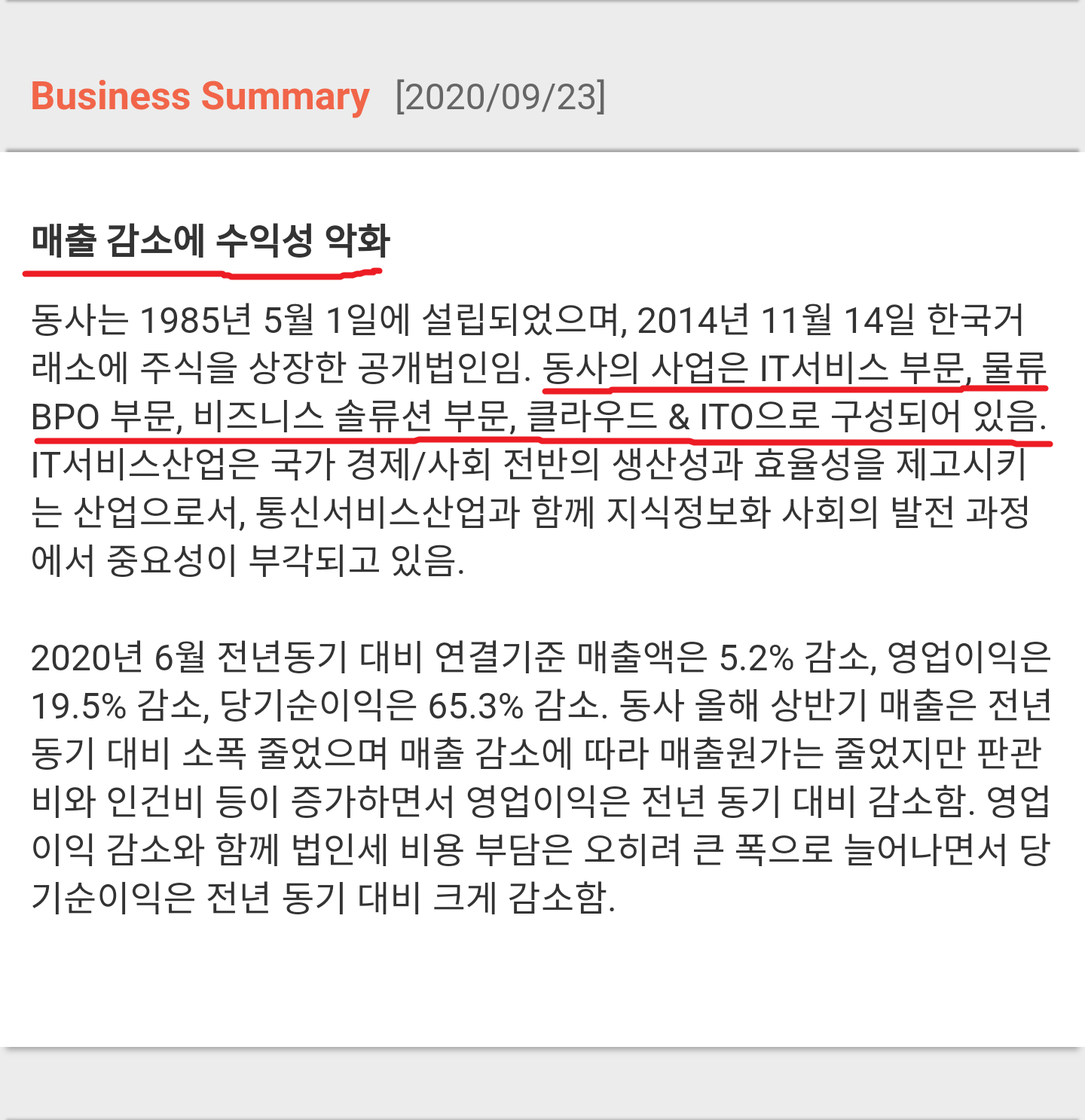 물론 삼성SDS의 비즈니스 서머리를 보시면 아시겠지만, 매출 감소에 수익성 악화라는 말이 좀 거슬리긴 합니다.