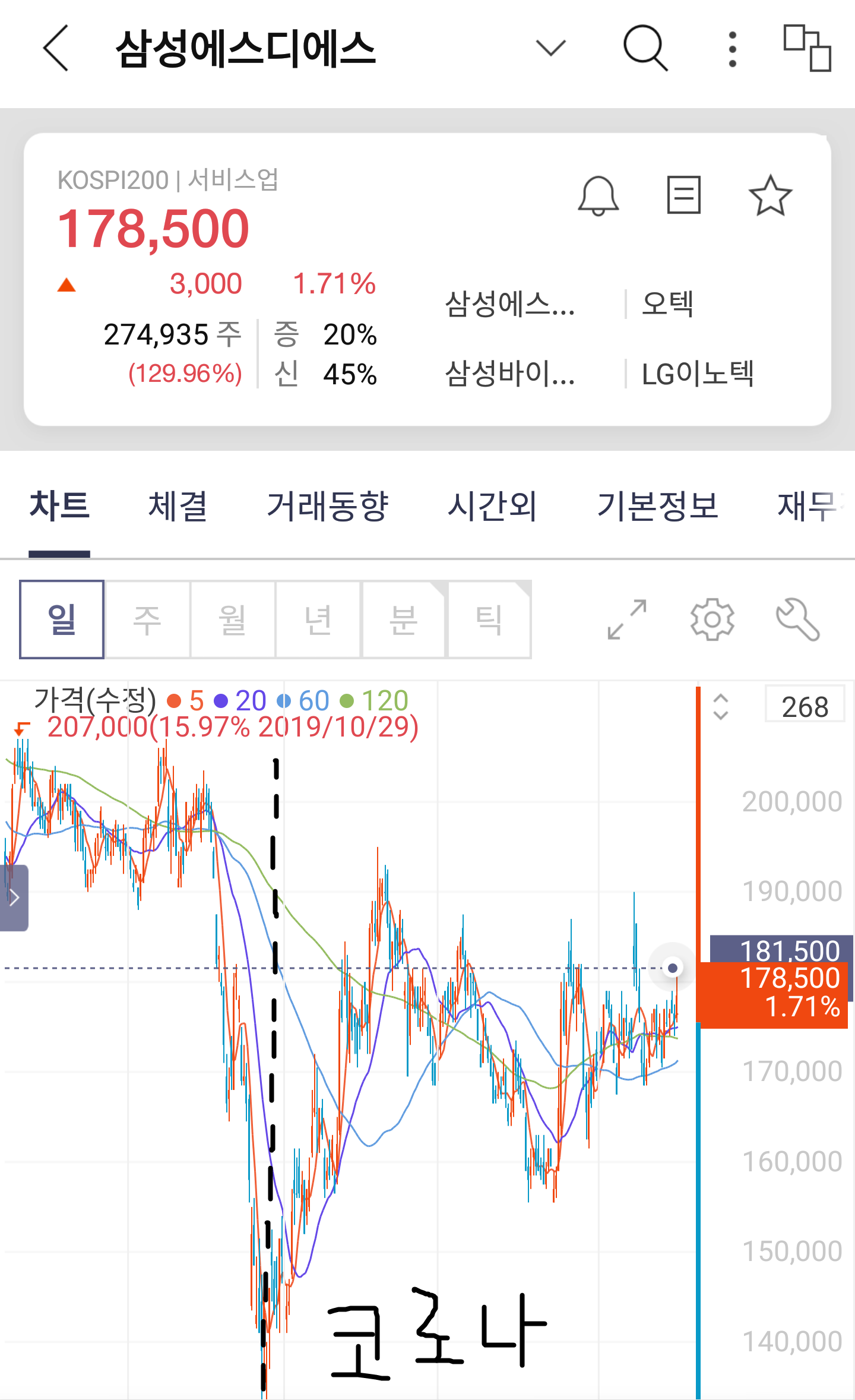 삼성SDS는 제가 처음 주식을 시작했을 때 샀던 주식인데, 그 당시에는 이 기업이 무엇을 하는 기업인지도 모르고 그냥 삼성이라고 쓰여있길래 산 주식입니다.