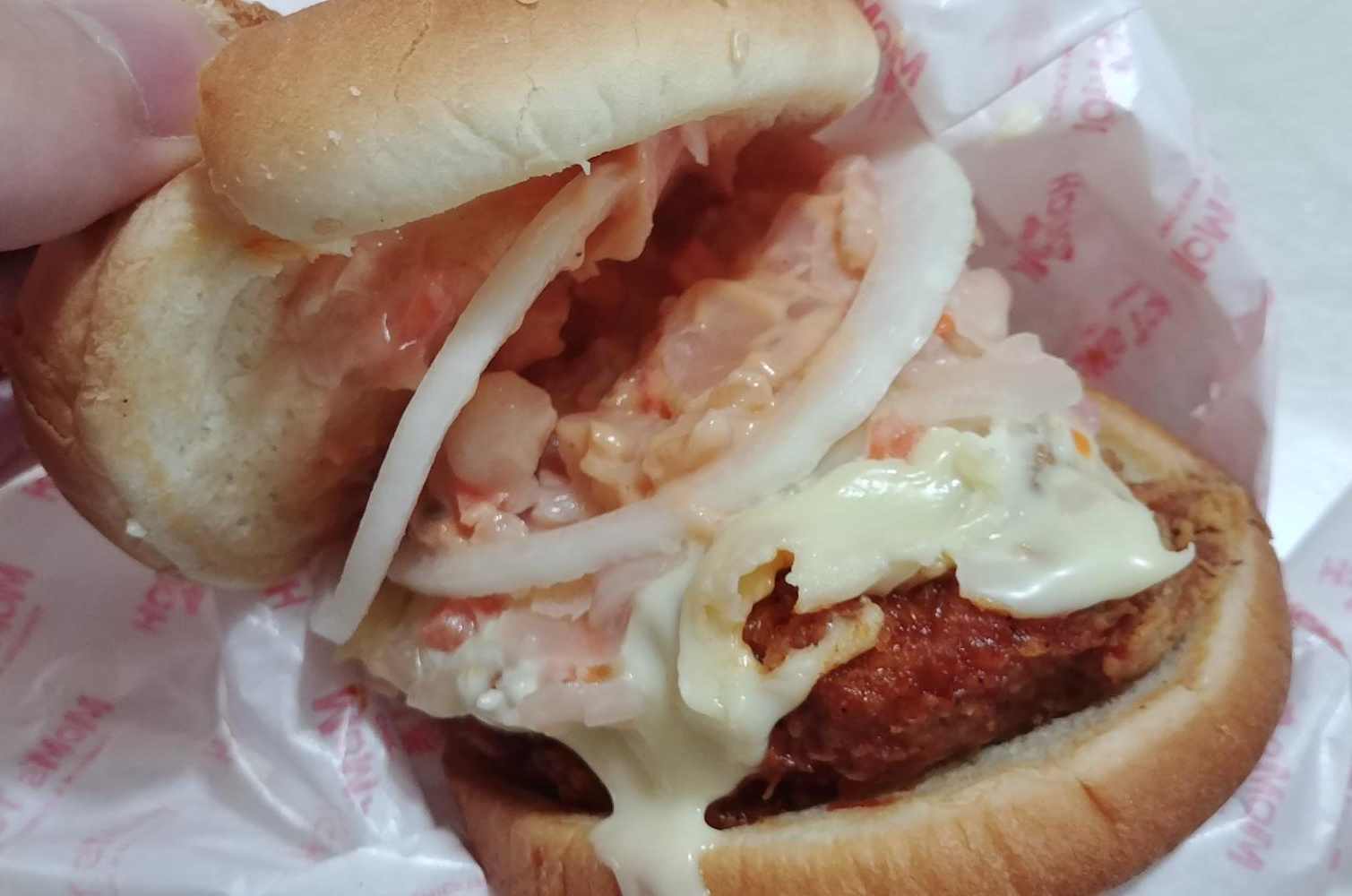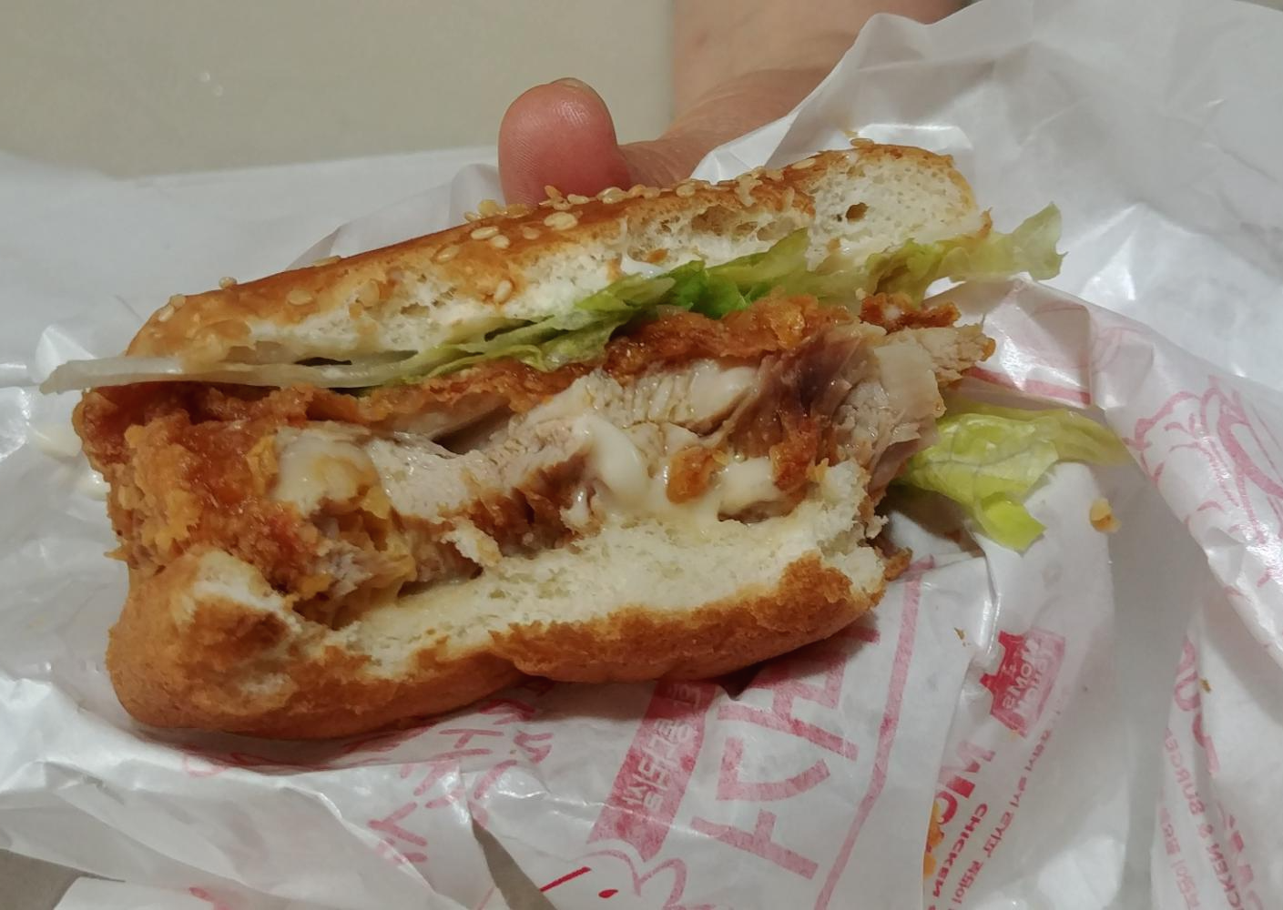 제가 좋아하는 닭다리살로 구성된 패티이지만, 솔직히 말씀드리면, 별로 맛이 없습니다.