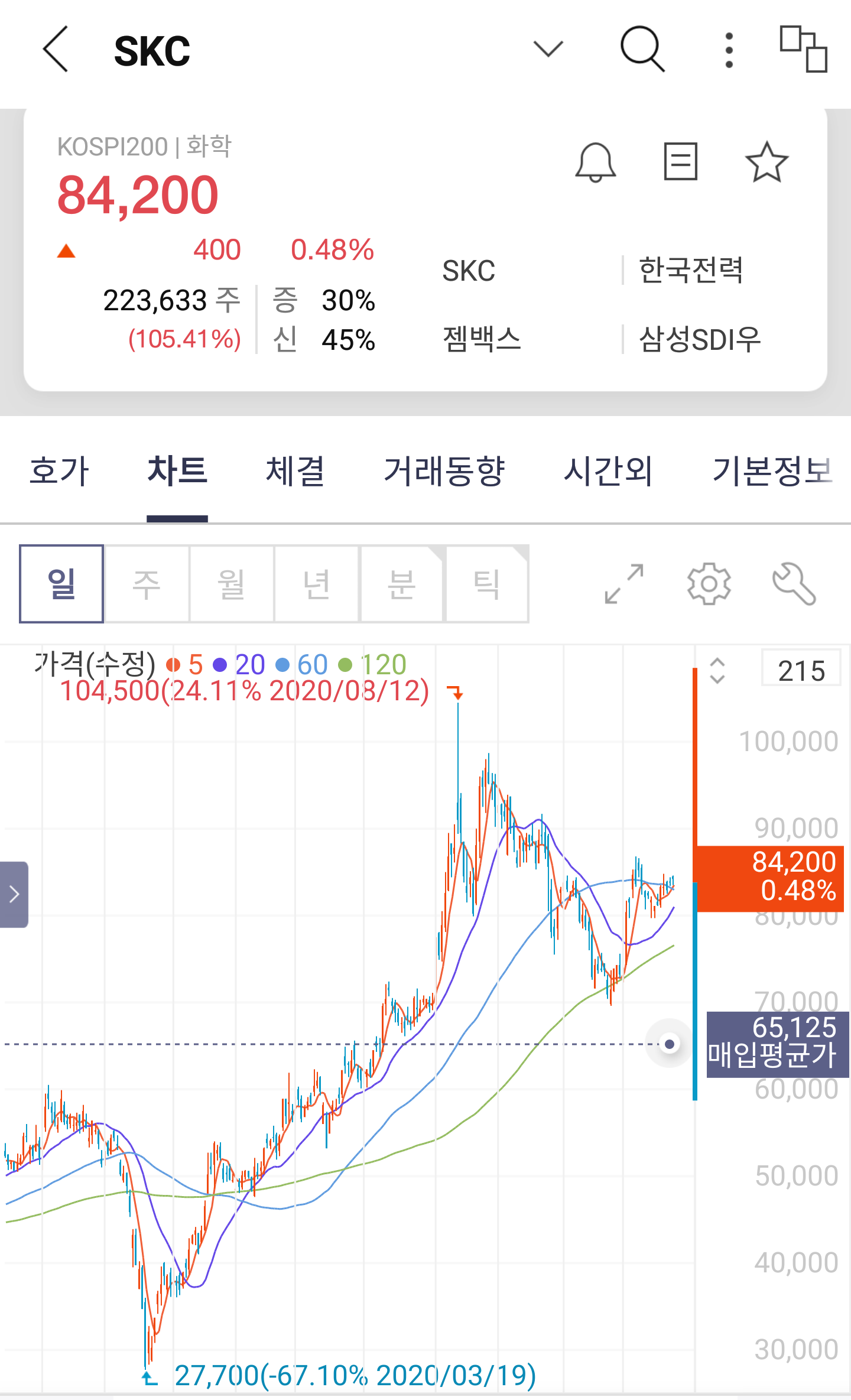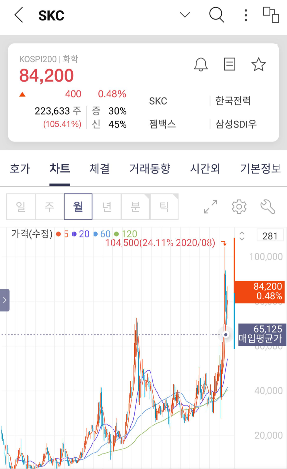 이미 SKC 주가가 너무 많이 올라있습니다.