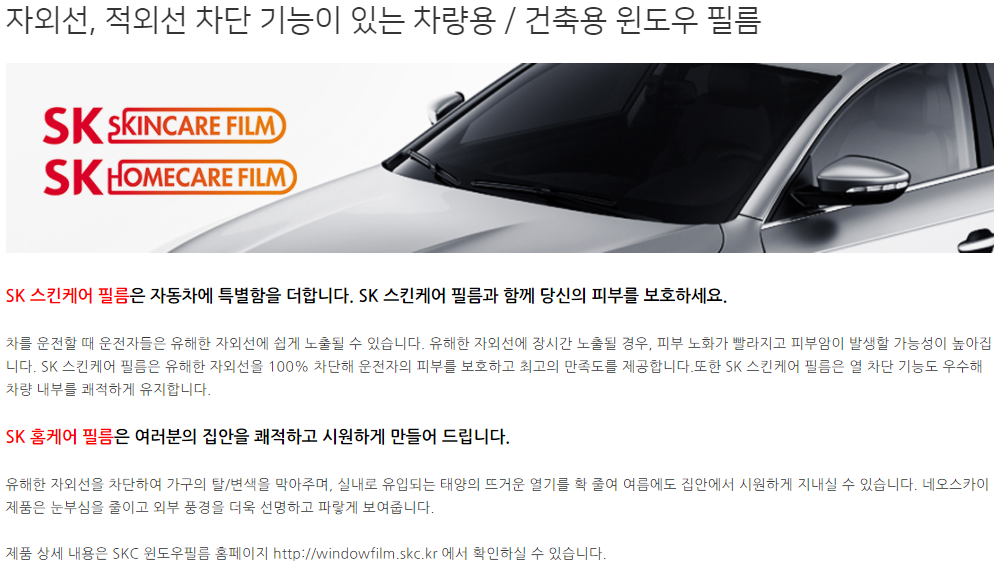 자동차나 건물 등 여러 창문에 부착될 수 있는 필름이 바로 윈도우 필름인데, 자외선이나 적외선을 막아주고 태양의 뜨거운 열기를 막아준다고 합니다.