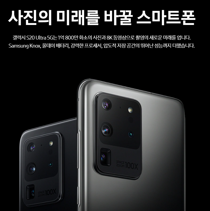 삼성전자 홈페이지에는 갤럭시 S20 울트라가 사진의 미래를 바꿀 스마트폰이라고 나와있습니다.