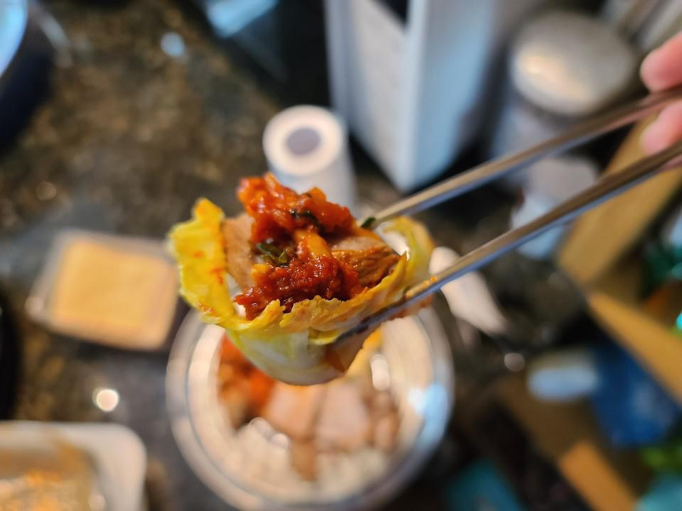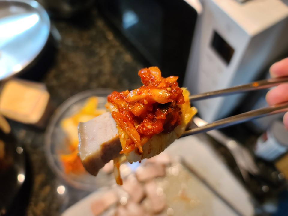 오늘 김장을 했기 때문에 수육과 김치 속, 그리고 절인 배추를 함께 찍어봤습니다.