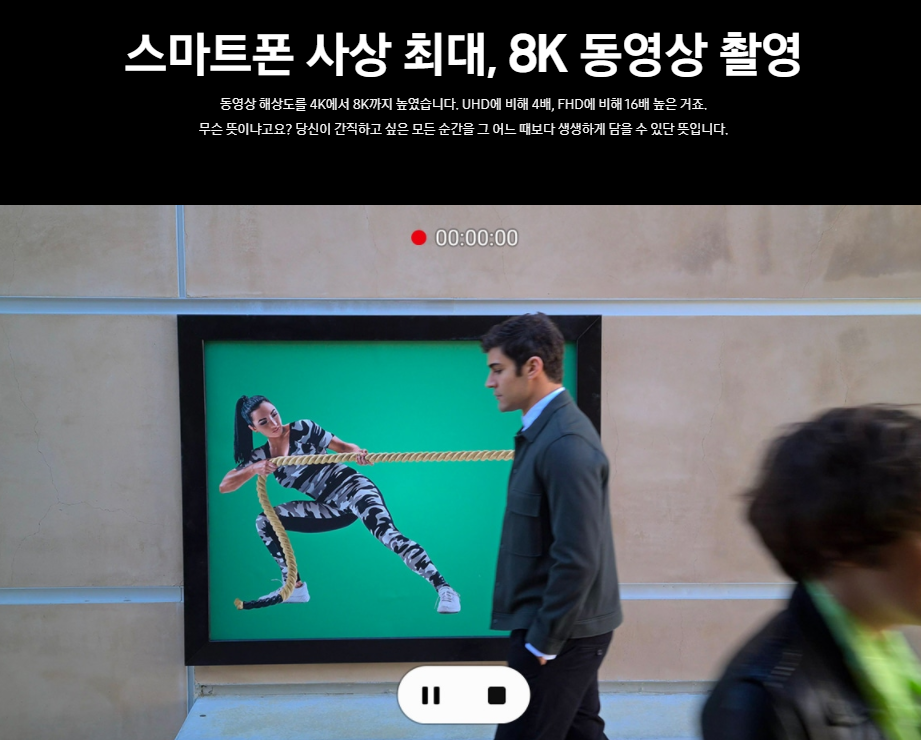 4K면 엄청나게 고화질이라고 알고 있는데, 스마트폰으로 8K 동영상을 찍을 수 있다니 참 대단한 것 같습니다.