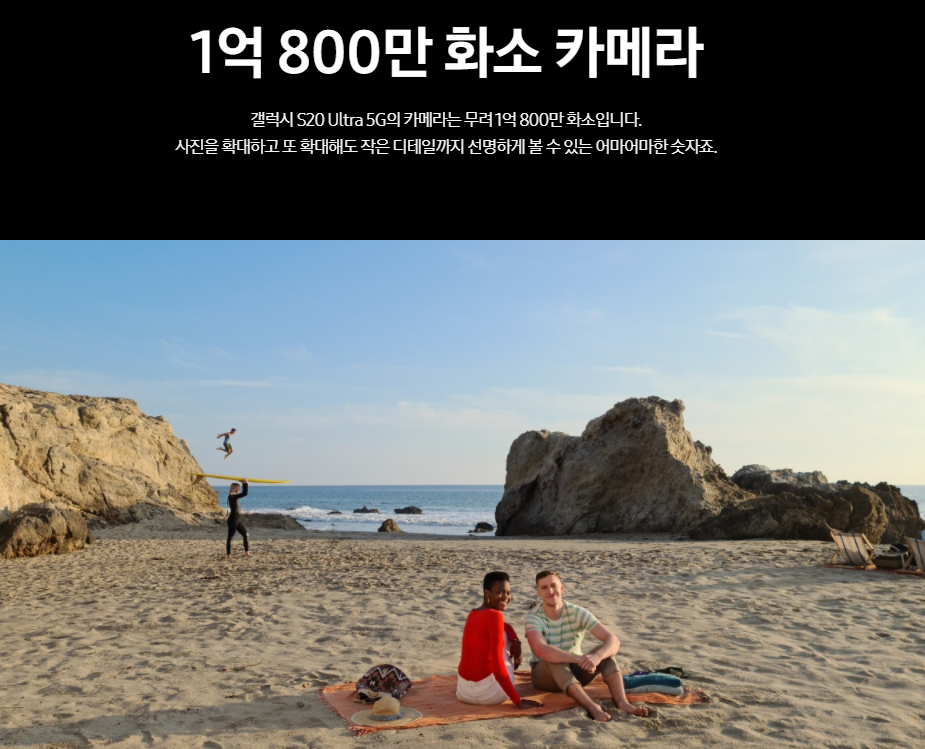 갤럭시 S20 울트라는 100배 스페이스 줌이 되고, 무려 1억 800만 화소의 카메라라고 합니다.