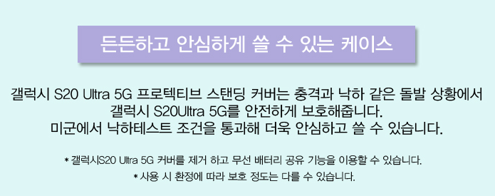 그럼 모두 갤럭시 S20 울트라 케이스 프로텍티브 스탠딩 커버 사용하시고 비싼 스마트폰 안전하게 오래 쓰시길 기원드립니다.