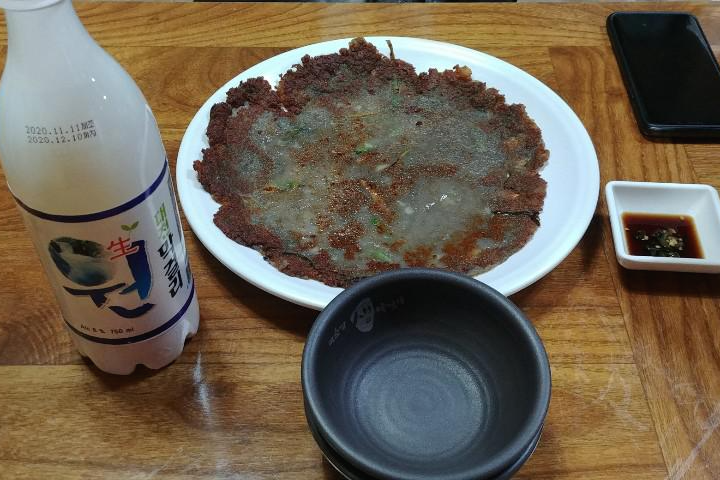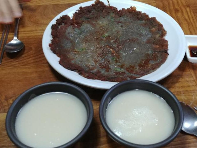 원래는 술을 잘 못먹지만, 전을 시켰는데 그냥 지나치면 두고두고 후회할 것 같아서 막걸리 한병을 시켜줬습니다.