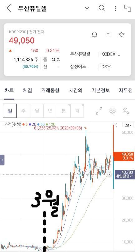 제가 평소에도 친환경에 관심을 많이 갖고 있었지만, 수소경제에 관련된 두산퓨얼셀을 많이 매수하지는 못했습니다.