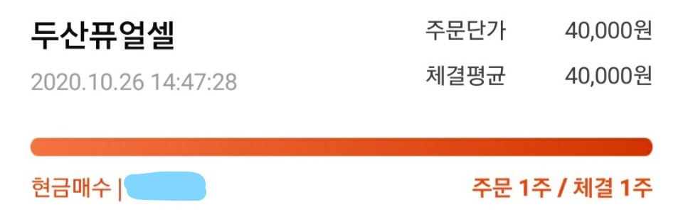 저는 두산퓨얼셀을 총 3주 매수했습니다.
