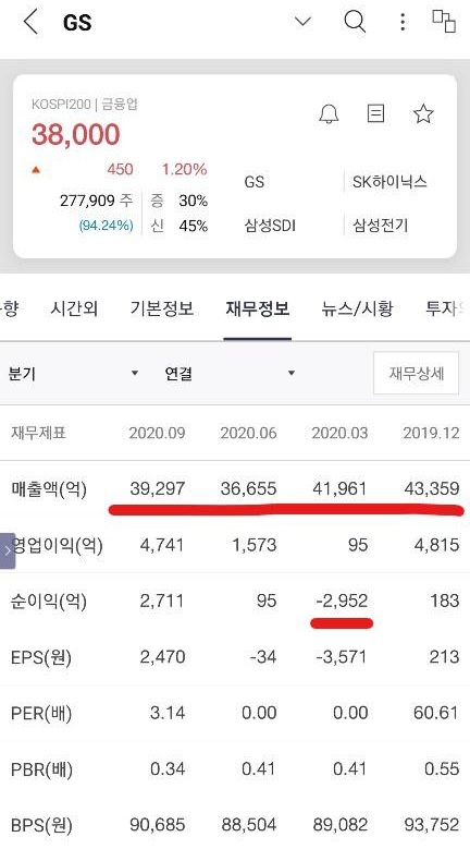 또한 올해 분기 기준 GS의 재무제표를 봐도 그 실적이 처참하다는 것을 알 수 있습니다.