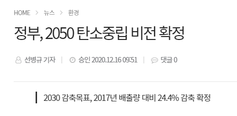 2050년까지 탄소배출을 0으로 만들겠다고 합니다.