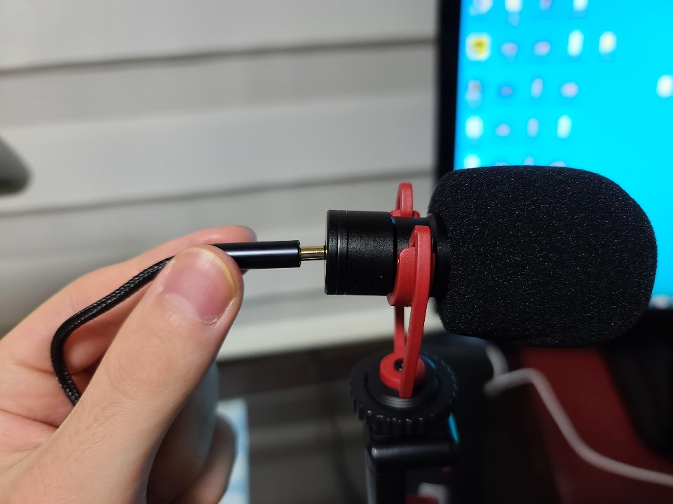 이제 다이소 AUX 케이블을 제 마이크에 연결해 보도록 하겠습니다.