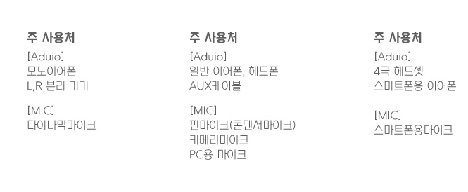 따라서 어떤 제품에 마이크를 연동시킬 것이냐에 따라서 사용되는 케이블의 종류가 달라지니,