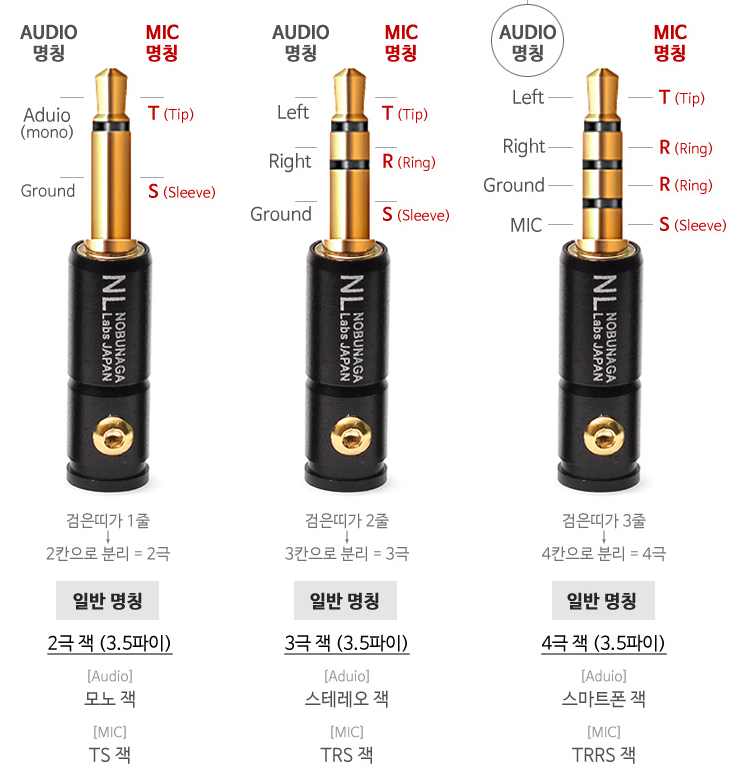 TRRS는 단자 쪽에 검은 선이 3개 있다는 것을 알 수 있고,