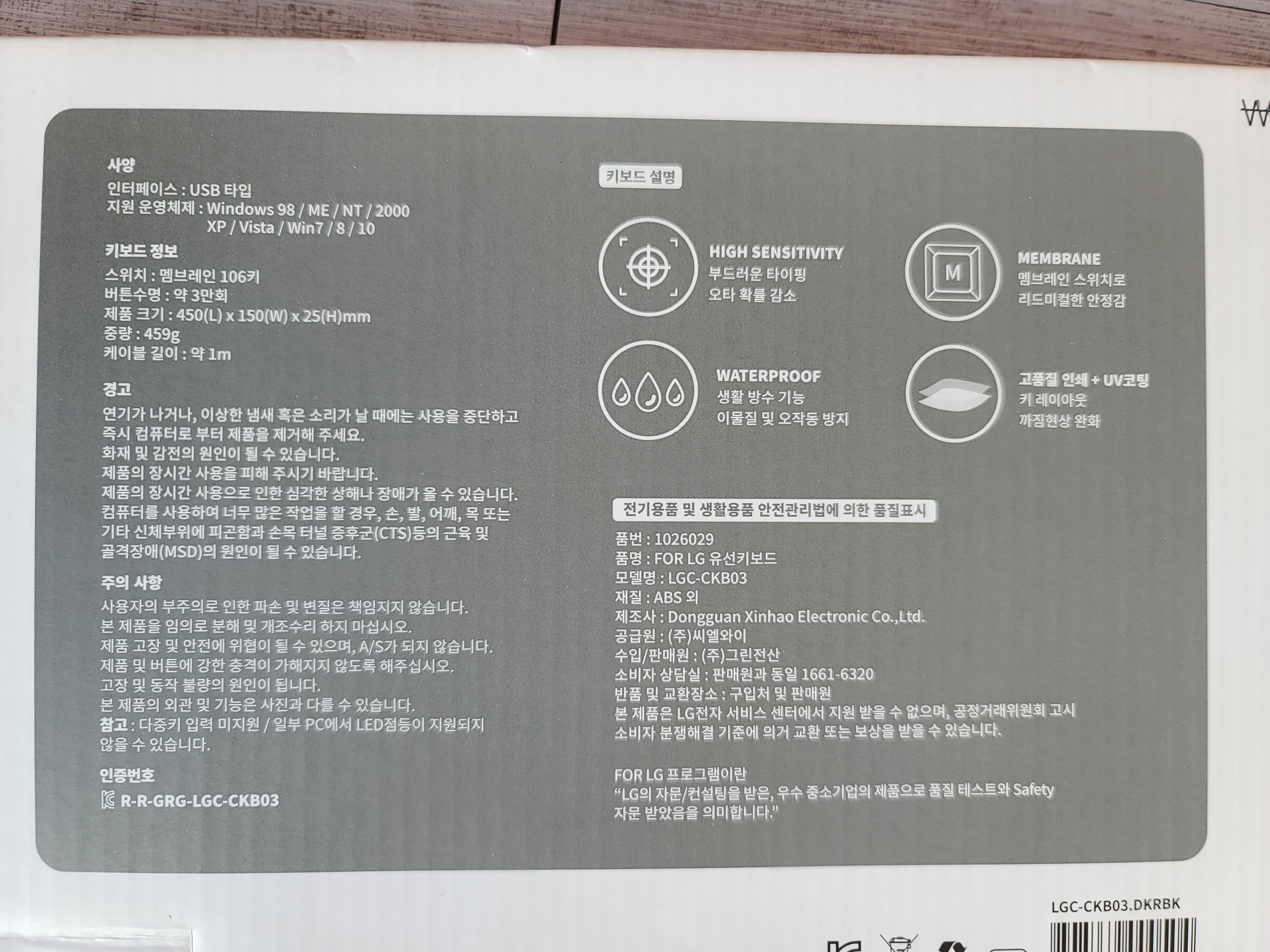 먼저 이 다이소 키보드(LGC-CKB03)가 어떤 스펙을 가지고 있는지 확인해보도록 하겠습니다.