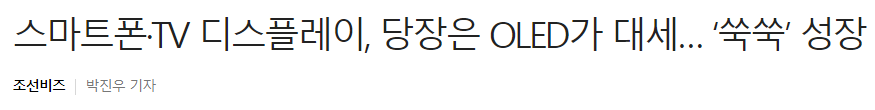 OLED가 현존하는 디스플레이 중에서 가장 좋은 디스플레이이기 때문에 자연스럽게 OLED 시장도 엄청나게 성장을 하고 있는 추세입니다.
