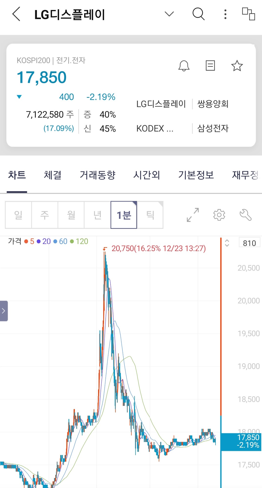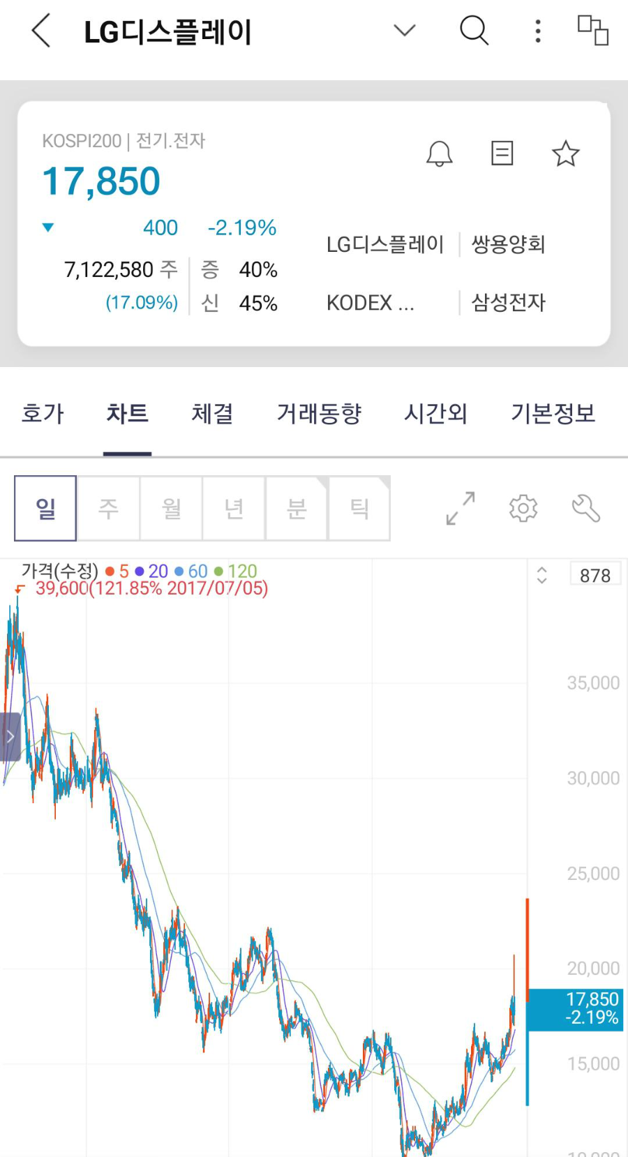 위의 LG디스플레이 주가 일봉 차트를 보시면 아시겠지만,