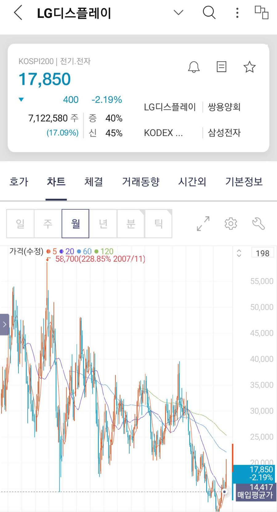 이 뿐만 아니라 LG디스플레이 주가 월봉 차트를 보시면,