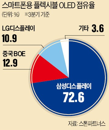 아쉽게도 삼성디스플레이가 1위라고 하길래 선두주자라고 표현해봤습니다.