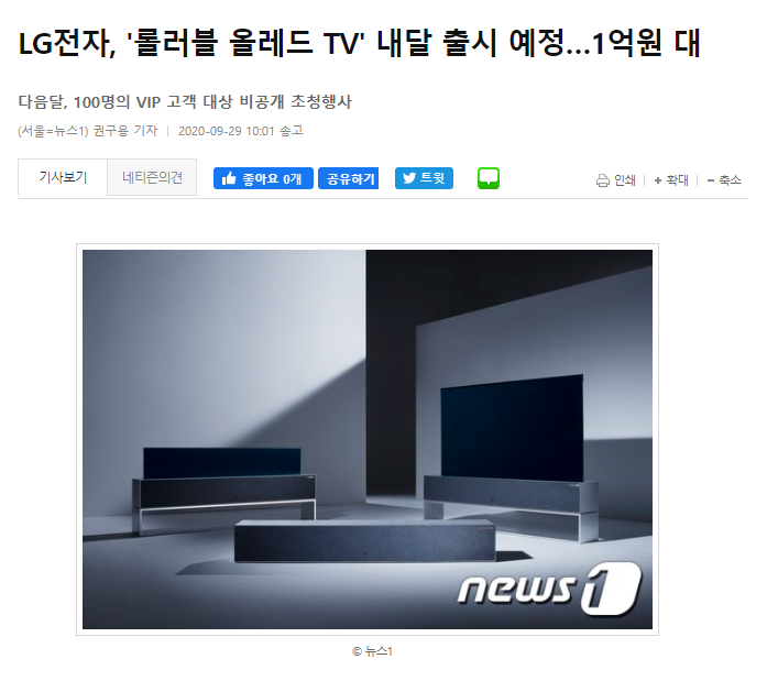 (사실 1억 원을 주고서 롤러블 TV를 살 생각은 1도 없지만, 그래도 기술력 하나는 대단한 것 같습니다.)