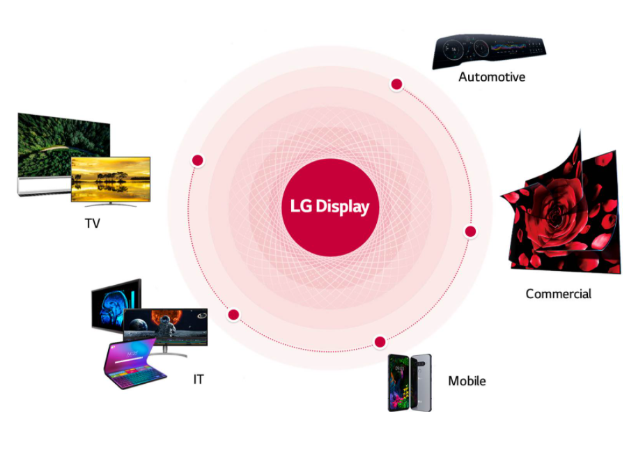 LG디스플레이는 TV, 노트북, 스마트폰, 상업용 디스플레이, 자동차용 디스플레이 등을 제조합니다.