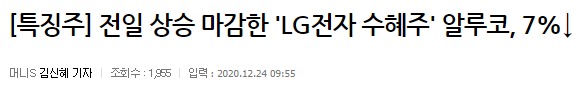 이날 LG전자는 상한가를 쳤는데, 여기서 알루코가 엮인 것입니다.
