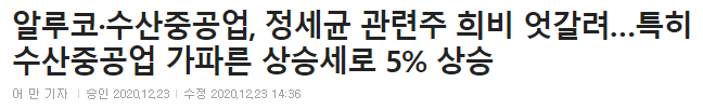그런데 알루코가 정세균 총리 관련주라는 것을 보고..