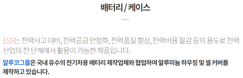 1. 알루코가 배터리용 알루미늄 하우징 및 셀 커버를 제작하여 LG화학에 납품하고,