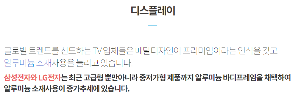 TV에 들어가는 알루미늄 바디 프레임도 알루코가 만들고 납품한다고 합니다.