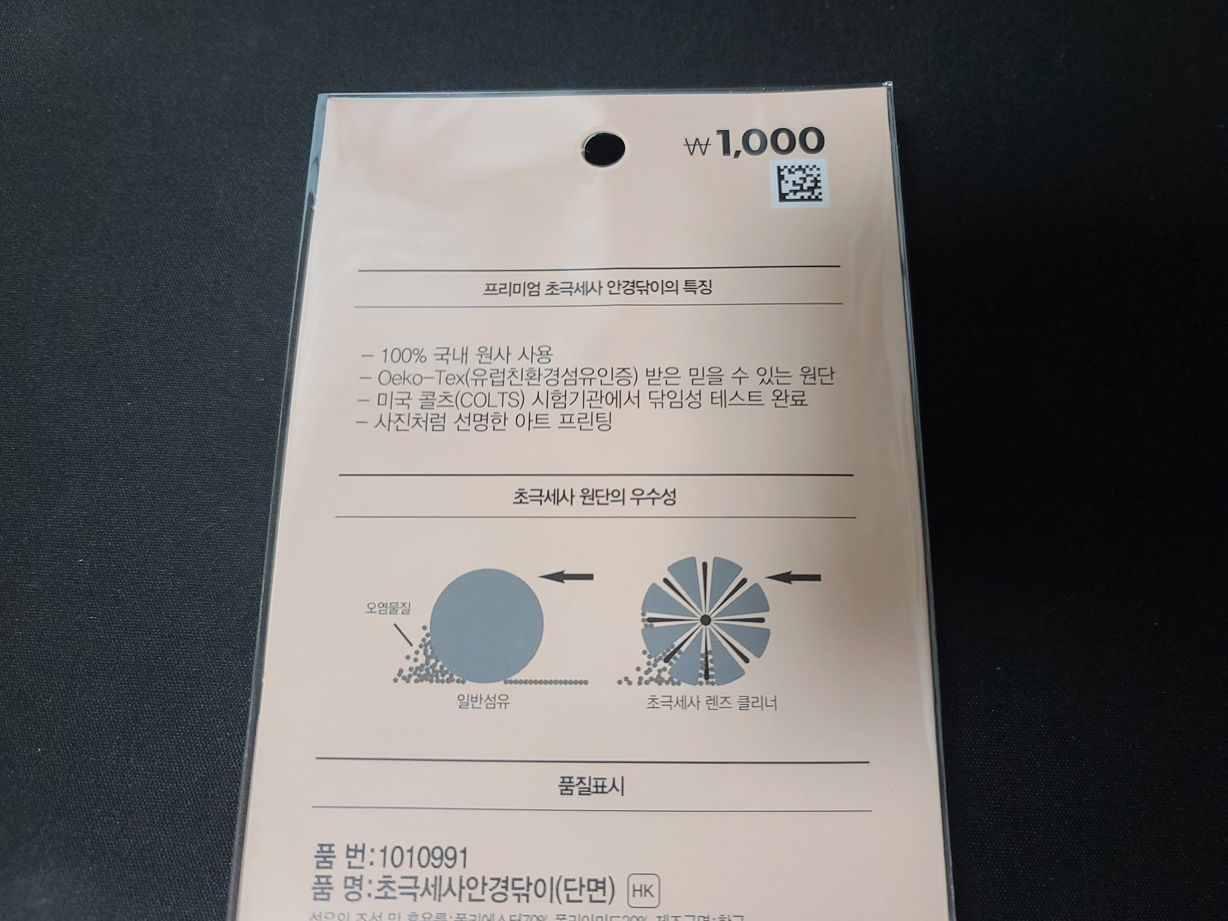 이 안경닦이 천 하나에 1,000원이나 한다는 것이 살짝 의문이긴 하지만,